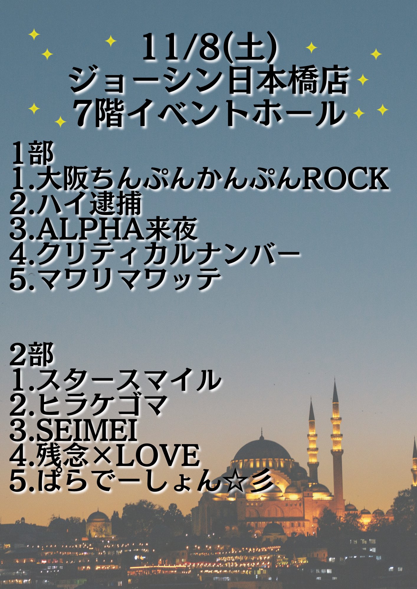 7 | 8 【インストア ジョーシン日本橋店7階イベントホール】 20th maxi single『ALPHA来夜 / ヒラケゴマ』発売記念https://babykingdom.jp/setlist-images/set-list2025-07-12/20251108.jpg |