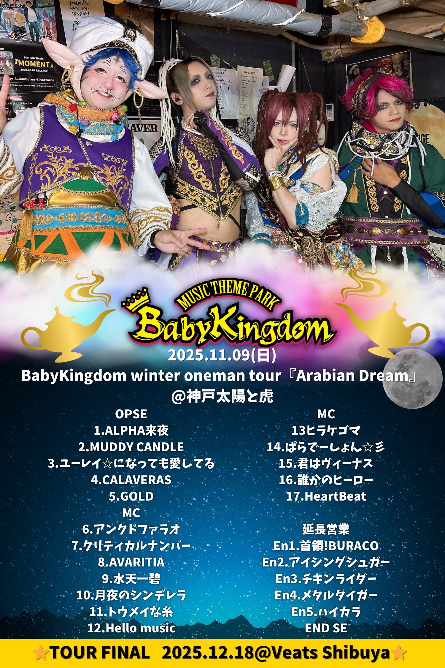 | 9 【ワンマン 神戸 太陽と虎】 winter oneman tour 『Arabian Dream』https://babykingdom.jp/setlist-images/set-list2025-07-12/20251109.jpg |