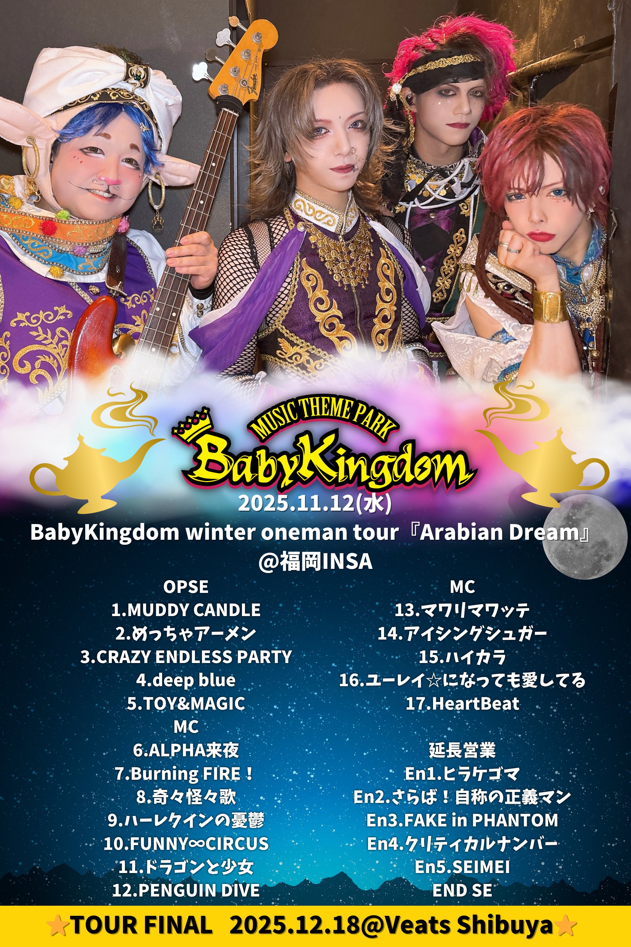 11 | 12 【ワンマン INSA FUKUOKA】 winter oneman tour 『Arabian Dream』https://babykingdom.jp/setlist-images/set-list2025-07-12/20251112.jpg |