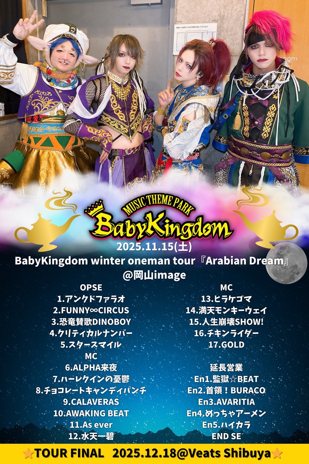 14 | 15 【ワンマン 岡山image】 winter oneman tour 『Arabian Dream』https://babykingdom.jp/setlist-images/set-list2025-07-12/20251115.jpg |